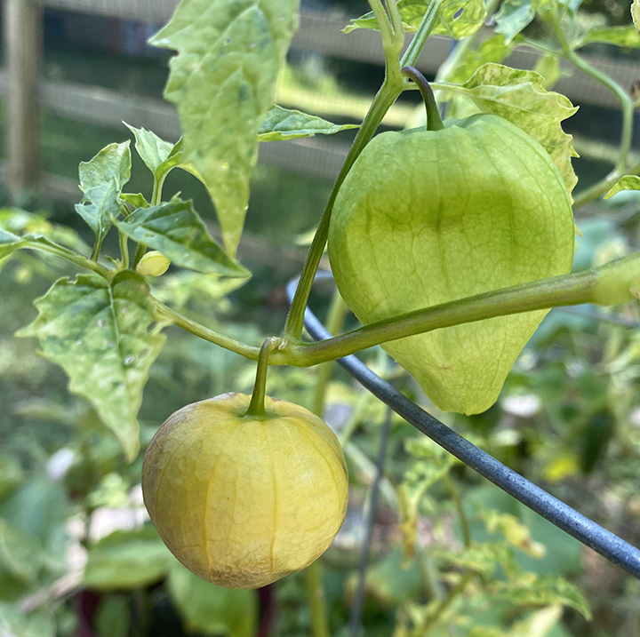 Green tomatillos are used often in Latin cuisine. They are the base for sauces and salsas. I let the fruits stay on the vine until they turn a yellow color and the husks become brownish. This makes the fruit sweeten and have less of a tangy flavor. After harvesting, remove the papery husk and rinse off the fruit as there will be a sticky residue on the surface. Then cube the tomatillos just like the tomatoes and the cucumbers. I add a scoop of tuna with mayo to the center of the plate and drizzle the whole dish with olive oil. Season with salt and pepper. You will have a delicious low calorie lunch in no time.